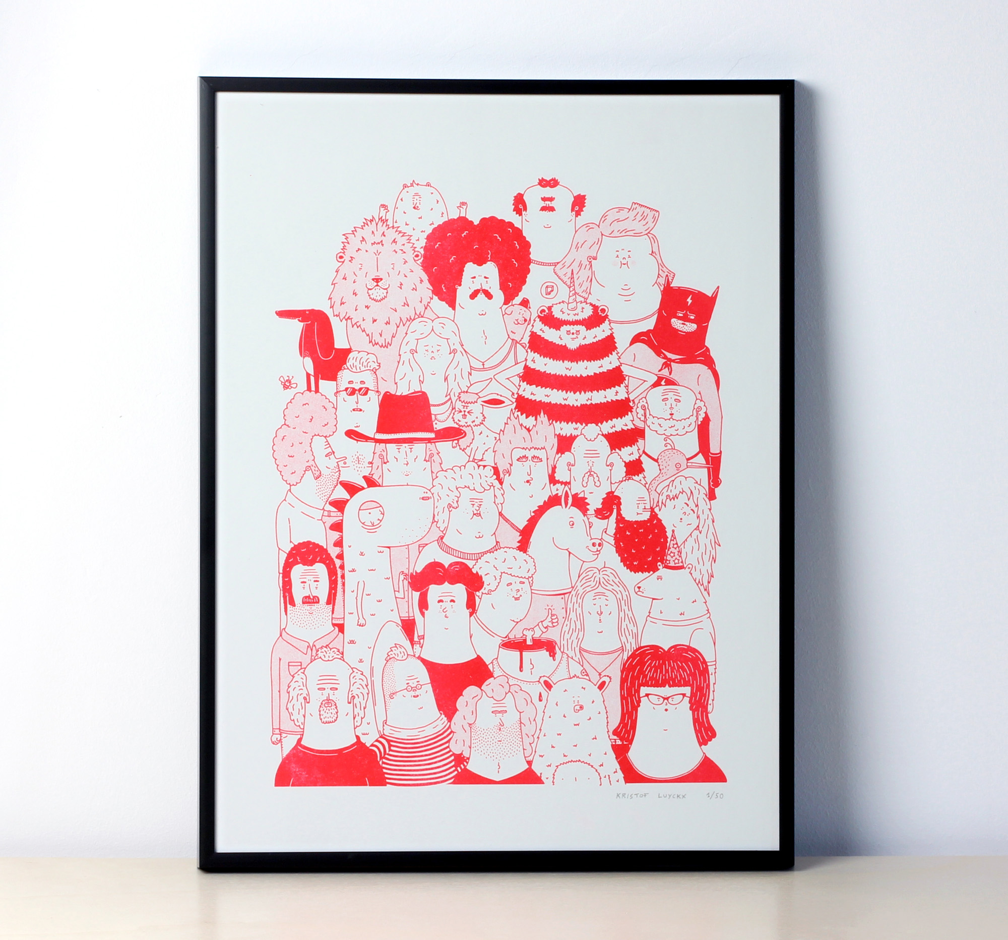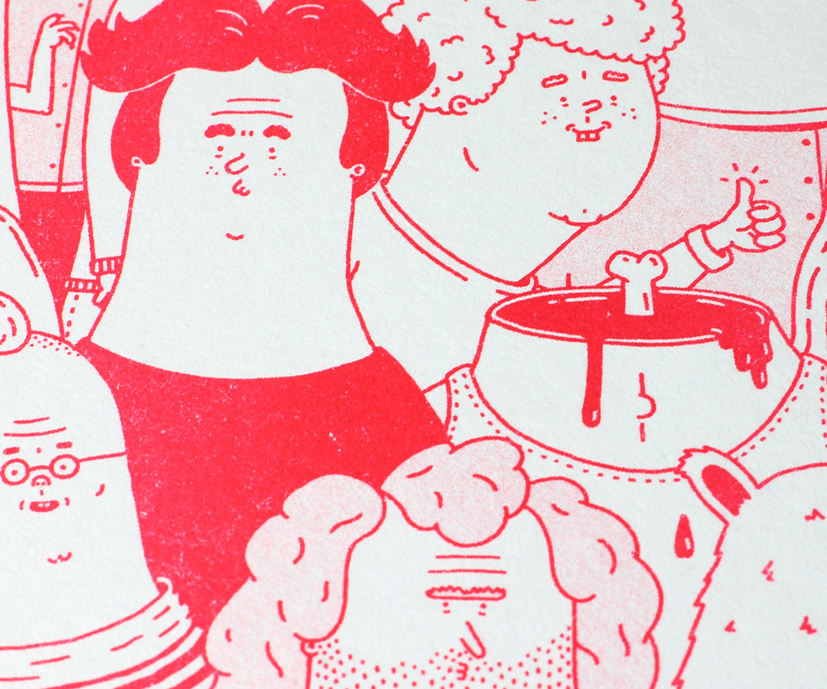 Fluorescent red riso print on a 300gr Gmund paper.